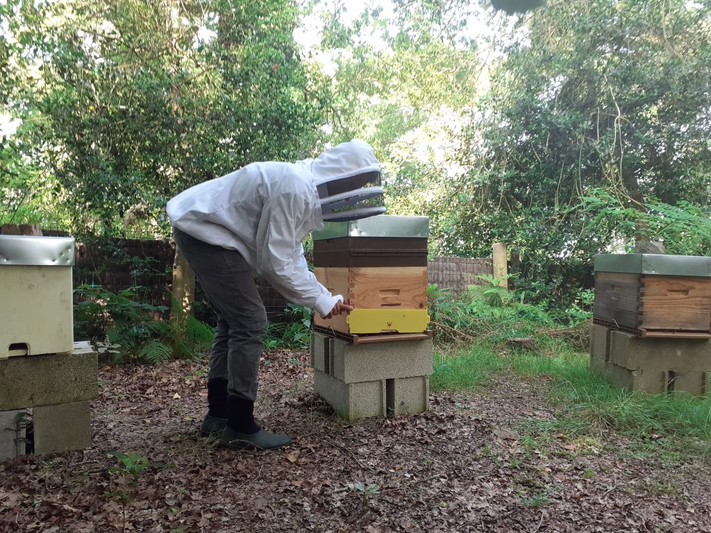 13 juin. Les premières ouvrières velutina chassent sur le rucher d’Eli. Il est temps de mettre en place la lame d’entrée.